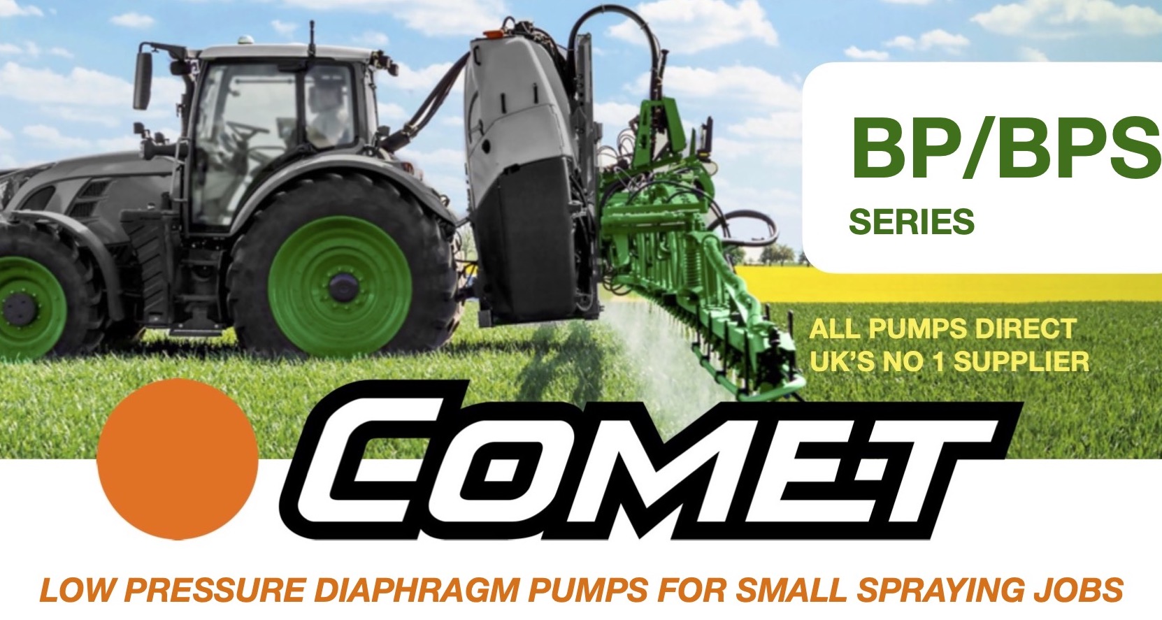 Comet BP/BPS Series Low Pressure Diaphragm Pumps and Accessories, ideal for agricultural spraying applications, these include fields, orchards, vineyards, nurseries and greenhouses. Accessories for these diaphragm pumps include gearboxes for electric and engine drive, flanges for hydraulic drive, Controlsets, safety valves, pressure accumulators, coupling kits, PTO guards, covers and cardan shaft kits. Our range of Comet diaphragm pumps can be purchased coupled with electric motors and engines, trolley water tank mounted engine driven versions are also available.