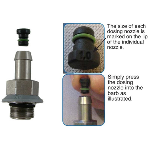 These restriction inserts have no effect on the venturi process taking place within the injector. They simply restrict the amount of chemical entering the water stream as it is lifted from it's container. The nozzle inserts range from 0.5mm to 2.0mm in size and simply push into the foam injector hose tail, please see data sheets for more information.